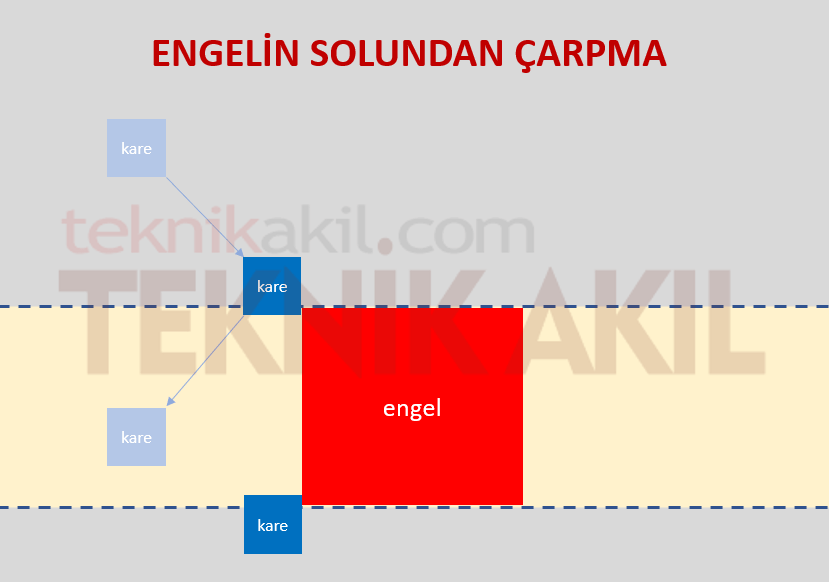 Engele soldan çarpan kare nesnesi için yukarıdaki görsel daha anlatıcı olacaktır.